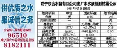 咸宁联合水务有限公司出厂水水质检测结果公示