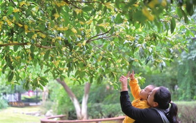 几度秋意浓,满城桂花香。延后了近一个月的桂花终于姗姗来迟,市区主干道、公园绿地,郁郁葱葱的桂花树上繁花似锦,一朵朵金灿灿的桂花绽放枝头,宛如满天繁星,整座城市花香四溢,沁人心脾。 记者 赵忠志/摄