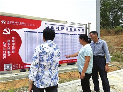 为了更好地服务当地老百姓,推动乡村产业持续振兴,通城农商行分批向每个村(社区)派驻1至2名金融村官,将他们的姓名、职务和联系方式张贴在村委会门前的宣传栏,要求他们定期进村入户调研,把资金、政策、服务送到农户家门口,围绕涉农类的种养大户、加工大户、涉农企业、家庭农场、农村专业合作社等开展信息建库,为每一个乡村老板量身定制了“农担贷”“亲情贷”“青创贷”等特色金融信贷产品。
