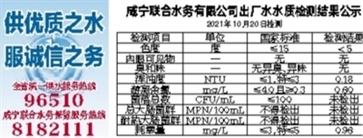 咸宁联合水务有限公司出厂水水质检测结果公示