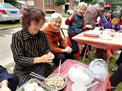 “今天能吃上大伙儿一起包的饺子,真好,这个重阳节过得很难忘。”10月14日,盘泗洲社区廉租房小区“爱在重阳,情暖邻里”包饺子敬老活动现场,老人们品尝着饺子,笑得合不拢嘴。