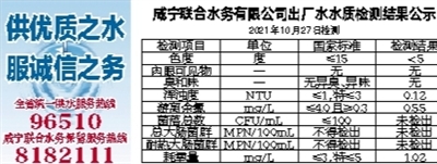 咸宁联合水务有限公司出厂水水质检测结果公示