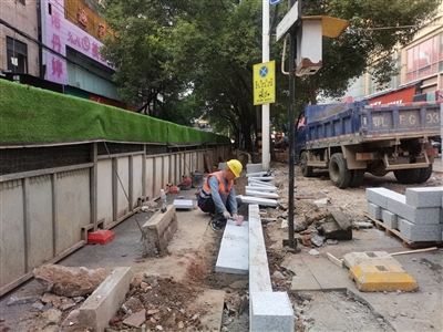 市政管理处相关负责人介绍,咸安中百路段商超林立、人流密集,为解决市民诉求,该处对咸安中百路段180余米人行道进行维修改造,重新铺设人行道板、盲道板、流水板等,设置无障碍通道,对树池进行整治。“我们周末不休,对施工质量进行严格把关,预计11月20日可完工。”该负责人说。