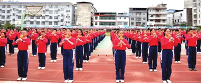该校相关负责人介绍,本学期,每天下午预备铃响5分钟,七、八年级各班集体合奏葫芦丝。放假时可在家练习,课余时间,可在室外自由练习。丝竹声声,已渐成校园一道靓丽的风景线。