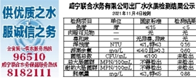 咸宁联合水务有限公司出厂水水质检测结果公示