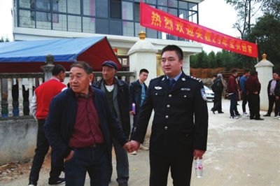 当日15时30分,张利宾和民警们首站抵达咸安公安分局,两个姐姐手捧鲜花、锦旗站在公安局门口等待着他们的到来。经过了简单而温馨的认亲、感谢仪式后,张利宾和两个姐姐在民警的护送下启程回家,与父母团聚。