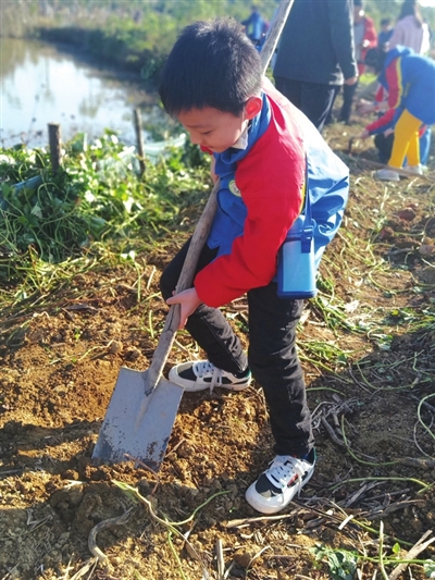 经过两天的适应,11月10日,记者在这里看到,孩子们从最初的手足无措到能够应付自如。户外拓展,徒步往返董继宁美术馆和长寿小学,孩子们仍能一路欢歌笑语;菜地里,孩子们握着锄头,一铲一锄,挖出一个个浑身沾满泥土的红薯;哪怕是红薯身上沾着的小蚯蚓,都能让孩子们兴奋不已。学生章家宇一开始总是挖破红薯,看看其他同学挖出大个完整的红薯,他很是着急。老师在一旁一对一指导,他才掌握要领,找到距离红薯根十厘米处挖,用力踩铁锹,顺势抬起铁锹,露出一个沾满泥土的红薯,看着一个个漂亮完整的红薯,章家宇兴奋自豪感溢于言表。