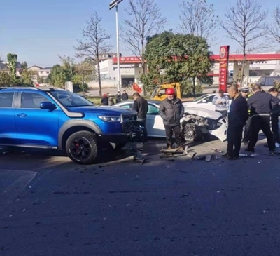 咸安交警大队民警介绍,当天上午9点10分,一辆白色宝马小车从一家4S店驶出,转弯上桂乡大道时,疑似操作不当,车身偏离行驶方向,撞上了道路中间的隔离护栏,冲向了对向车道。由于撞击较猛,波及到了对向车道上一辆正常行驶的蓝色长城炮的皮卡车。造成两车受损严重,白色宝马小车副驾驶人员受伤的道路交通事故。