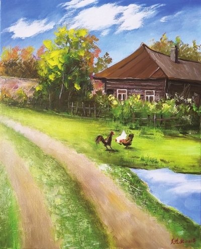 母亲虽然几近失明,但朱美进画的母亲眼睛明亮深邃;父亲屋角破旧的鞋,却在朱美进画中是丰收背后的艰辛;门前的屋舍鸡犬,在朱美进的笔下栩栩如生……慢慢地,朱美进美术作品不仅得到周围很多人的好评,他的自强精神也赢得了一片赞誉。