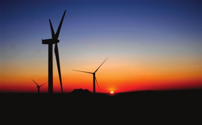 12月18日,通山县九宫山风力发电场旭日东升,美不胜收。近年来,我市大力发展风电,先后建成九宫山、黄龙山、大幕山等风电项目,为我市经济发展注入了绿色动能。 记者 袁灿/摄