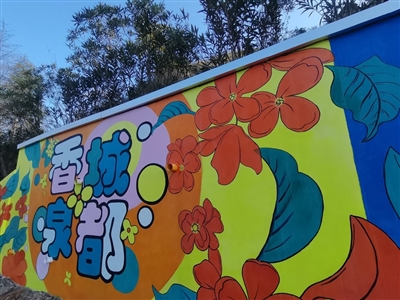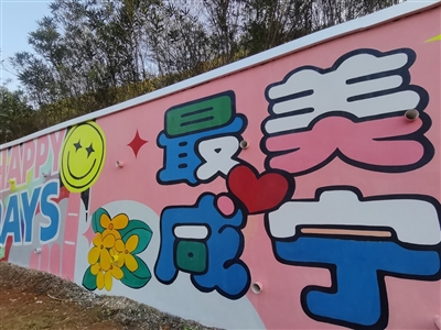 12月21日下午,记者来到麦笠山路碧桂园凤凰温泉酒店路段,一处“香城泉都 最美咸宁”主题涂鸦墙映入眼帘,画面中,一家三口惬意地享受温泉浴,在绿意盎然中欢快奔跑,轻松购物收获满满购物袋,背景以桂花、楠竹等做点缀,甜蜜温馨的生活气息扑面而来。