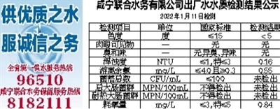 咸宁联合水务有限公司出厂水水质检测结果公示
