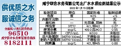 咸宁联合水务有限公司出厂水水质检测结果公示