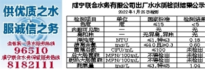 咸宁联合水务有限公司出厂水水质检测结果公示