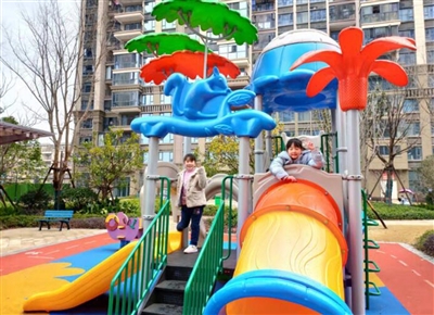 宽阔的休闲区,六岁的小朋友逸轩和立欣正在打羽毛球;静谧的水适能中心,十一岁的唯萱和八岁的霖洁正在垒鹅卵石小桥。