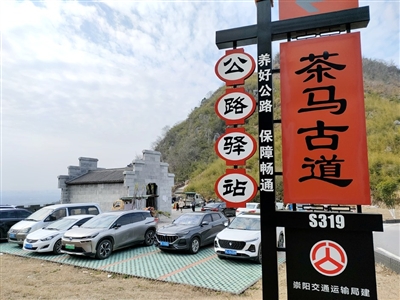 在龙泉山古驿道公路驿站观景平台停车后,记者注意到,公路驿站的停车场已停放有十余台悬挂各地牌照的私家车;蜿蜒的旅游公路穿梭在青山绿水间,龙泉山古驿道上,游客三五成群登高远眺,山下的水库、美丽村湾尽收眼底。