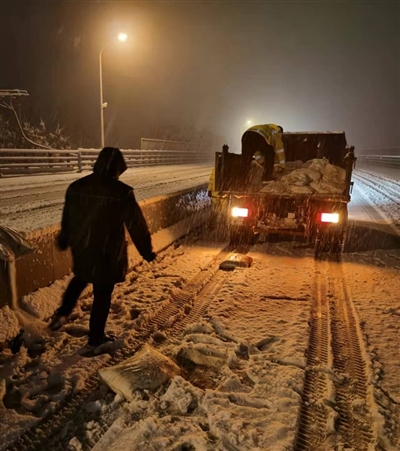 市政管理处按照预案相关要求,全体职工24小时现场值守,同时调动设备集结工作,加强桥梁巡视检查,并做好除雪防冻各项工作。该处还储备融雪剂30吨、草垫麻袋4000条、挡板500米,以及铁锹、手套等应急物资和防冻劳动保护物品。