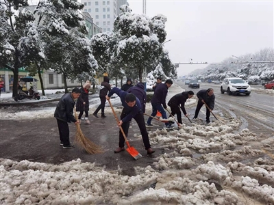 2月7日,市委组织部近40名党员干部率先垂范,主动参加包保路段的破冰除雪工作。经过1个多小时齐心协力的清扫,确保了道路畅通、市民安全出行。