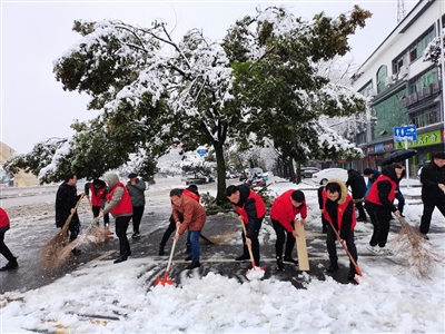 | 2月7日,咸安区委政法委开展“扫雪除冰”行动,委机关驻澄水洞村第一书记带领村干部沿村主要道路、主要出入口逐一排险除冰,清扫银桂路段、桂花路社区、麻塘小区、银泉名座、桂泉二区、金信小区以及添地缘小区积雪,展现政法铁军担当。 (通讯员张婷) |