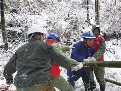 灾情发生后,咸宁供电公司千余名“跑山电工”奔赴各事故点抢修点全力抢修,用最快速度恢复供电。截至7日17:00,已恢复1条35千伏线路、10条10千伏线路、22520个用户,恢复率73%。