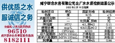 咸宁联合水务有限公司出厂水水质检测结果公示