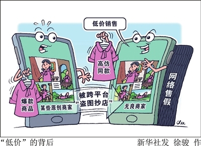 北京市某律师事务所知识产权律师刘凯告诉记者,跨平台盗图抄店行为主要存在于一些新兴社交电商等治理薄弱的平台,盗图商家大多通过盗用原创商家的商品图片和抄搬原创店铺,产品以次充好,低价诱导消费者下单购买高仿同款。“盗图抄店已构成不正当竞争,不仅分走原创商家大量客流,更是一种隐秘的新型售假方式。”刘凯说。