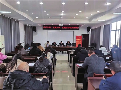 本报讯(通讯员 何理民)2月14日,嘉鱼县司法局召开“五提六争”实践活动动员部署会暨第一期专题读书班。会议由县司法局党组书记李志平主持并作动员讲话,该局全体全体干部参加会议。
