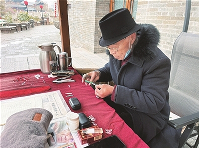 “为冬奥加油!为冬奥喝彩!”近日,在老城区洛邑古城景区一座小桥旁,64岁的米雕艺人闫交生手里拿着米雕“冰墩墩”开心地说。