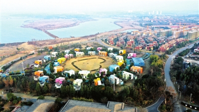 2月17日,无人机拍摄的梓山湖生态新城,处处充满生机与活力。