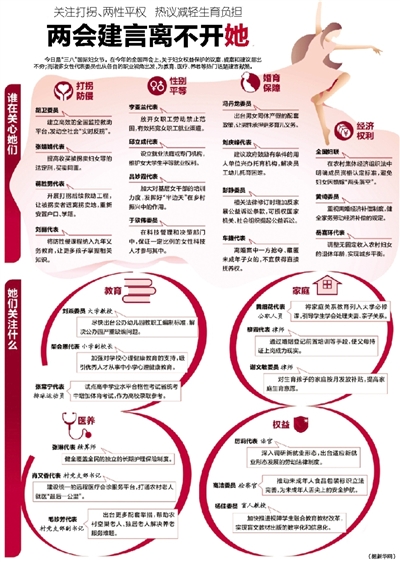 今日是“三八”国际妇女节。在今年的全国两会上,关于妇女权益保护的议案、提案和建议层出不穷;而诸多女性代表委员也从各自的职业视角出发,为教育、医疗、养老等热门话题建言献策。