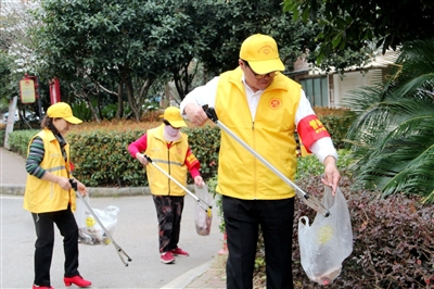 当天,和郑传宇一样参与小区志愿服务的,还有周艳梅等10多位“香城婆婆嘴”。他们身穿黄马甲,佩戴袖章,手持工具,活跃在小区的各个角落,捡拾烟头、塑料袋、包装纸等垃圾,并对不文明停车等行为进行劝阻,忙得不亦乐乎。