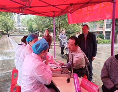 3月18日,温泉街道希望桥社区新时代文明实践站联合湖北科技学院附二医院,在大楚城小区开展学雷锋志愿服务、送医送药进社区活动。(记者 陈志茹 通讯员 郑荣铭 王波)