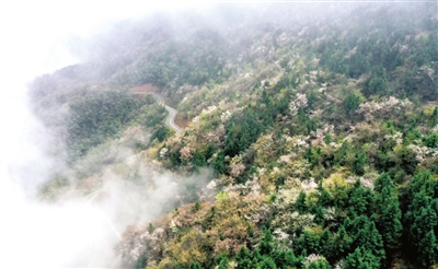 大幕乡东源油菜花海连绵3公里,气势壮观;大幕山粉白相间的野樱花在云雾中盛放,美不胜收。一批批游客慕名而来踏青赏花。 记者 夏正锋/摄