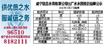 咸宁联合水务有限公司出厂水水质检测结果公示