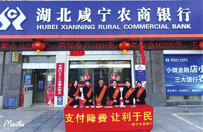 本报讯 (记者 徐浪 通讯员 陈醇) 3月24日,咸宁农商行在全辖范围内开展“支付降费 让利于民”主题宣传活动,旨在让小微企业、个体工商户及社会公众对该政策应知尽知、应享尽享。