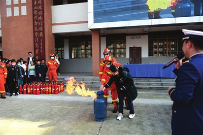 本次演练邀请了咸安区消防救援大队的消防救援人员参与指导。在演练之前,消防官兵开展了知识讲解,从如何报火警、火灾的预防、火场自救及逃生方法等消防安全基本常识进行了讲解。并进行相关技能的演练,灭火器的使用方法和技巧、液化气坛着火如何安全熄灭等灭火技巧。
