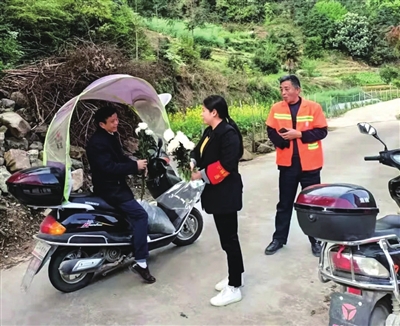 4月5日,崇阳县肖岭乡白马大桥桥头,白马村村干部雷郭棉看到有村民手拿塑料花去扫墓,赶紧走上前去。“您好,为了保护环境,请您不要使用塑料祭祀用品,我们可以用鲜花替换您手中的塑料花吗?”一番解说之后,雷郭棉用鲜花顺利替换下了塑料花。