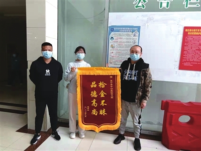 本报讯(记者 夏咸芳 通讯员 王彪 沈隽宁)“感谢市中心医院保安人员送回了我的救命钱……”4月2日,失主成先生专程来到市中心医院,将一面绣有“拾金不昧,品德高尚”八个大字的锦旗,赠送给该院的保安人员,感谢他们拾金不昧的义举。