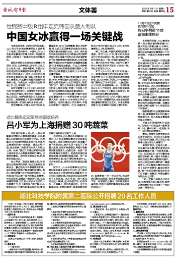 本报综合消息 4月9日,一车由举重奥运冠军吕小军捐赠的蔬菜,从安徽黄山出发顺利到达上海市长宁区。这批重达30吨的新鲜蔬菜是吕小军出资为上海捐助的第一批物资。据吕小军介绍,还会有第二批物资在未来几天抵达上海。他说:“最近几天通过新闻关注到上海很多民众出现蔬菜短缺的情况,也是特别着急。我托朋友亲自采购,然后装车运输过去。”