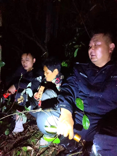 时间悄然来到次日凌晨3:30分,正当大家搜寻至一山坳处,突然听到“啊!啊!”的叫声,民警和村干部闻声用手电照去,只见一位老人蜷缩在一荆棘丛中,衣服已被打湿,冻得瑟瑟发抖。