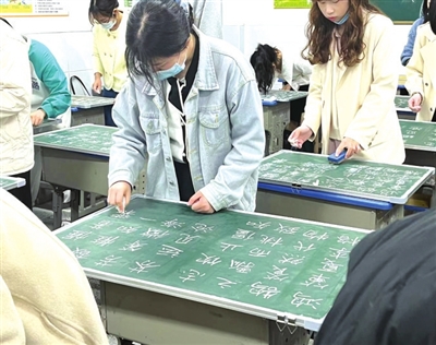 在粉笔字和钢笔字比赛现场,参赛教师尽情挥洒着手中之笔,他们书写的字体有的洒脱大气、遒劲刚毅;有的飘逸舒展、运笔秀巧;有的笔画工整、稍显稚嫩……不一会儿一幅幅各具特色的作品便呈现在评委们面前,形成了一道道亮丽的风景线。