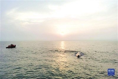 经过长达20个小时的接力救援,昨日早上5时20分左右,在渔政船的牵引和护航下,昨天上午在浙江省宁波市象山县石浦镇海域搁浅的抹香鲸成功抵达目的地海域,渔政船已经切断牵引绳将抹香鲸成功放归大海。