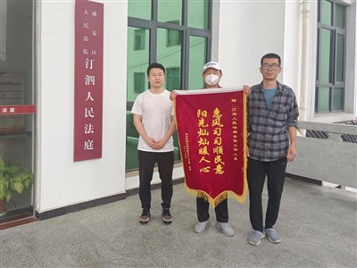 本报讯(记者原子 通讯员 陈桥)“多亏了余法官为我作主,这笔拖了二十多年的欠债终于了结,我也心安了。”4月12日上午,一位年过六旬的老人将一面锦旗送到咸安区人民法院汀泗法庭,以表达对法官余慧微的感激之情。