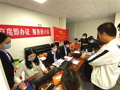 市税务局、市政务服务和大数据局、市公积金中心、咸宁联合水务的工作人员则协助业主办证,协助业主办理自来水登记过户。