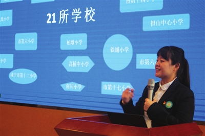 精品展示课结束后,咸宁市第二实验小学校长谭璐对该校的课改工作进行了汇报。她提倡教育资源可以共享,并将自己的一些理念分享给所有与会人员。谭璐认为:学校是一种“以人为本”的舞台教育。最好的教育,应该是人人是老师、人人是学生、人人是主角、让人人成为最好的自己,让人人在学校这个舞台上成为闪闪发光的自己。