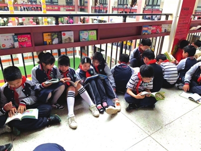 该校校长谭璐认为,好的学校空间,每个角落都应蕴藏着教育内涵。为此,学校将教学楼的一至三层的教室走廊进行综合规划设计,建起了不同色调与形式的的阅读长廊,专门设置了各年级段学生使用的阅读书架,共征集到各类书籍三千余册。通过建立阅读长廊,让学生将家中闲置书籍统一放在所设置的书架上,和学校出资购买的书籍一起,供学生们循环利用阅读,使资源共享,既能扩大阅读面,增加阅读量,同时也培养学生们从小养成爱读书的良好习惯。各班还设置班级图书管理员岗位,具体负责图书的管理和借阅工作。学期结束对优秀管理员给予一定的奖励,评选最佳保护奖、读书积极奖、最佳图书管理员奖,对积极阅读的同学也给予一定的奖励,并定时评选班级“阅读小达人”等。与此同时,学校将“让读书成为习惯”作为创建书香校园的特色追求,每周三、五设置一节阅读引导课,在为孩子们分享推荐好书的同时,精心指导孩子们如何正确阅读一整本好书。系列的“广泛性共享阅读”举措,使校园更富人文底蕴,充满智慧和生机。