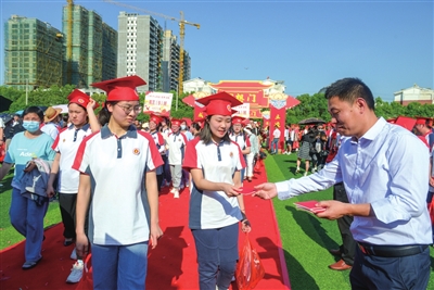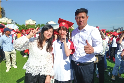 “等等,有点歪。”高三(10A)班学生周佳荟的哥哥一边帮妹妹整理帽子,一边调整最佳位置给妹妹拍照留念。有哥哥来参加自己的成人礼,周佳荟开心不已,并表示家人的关心给了她很大的信心,她也将更加轻松上阵,打好高考“这一仗”。