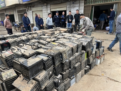 市生态环境执法人员和公安民警现场查获废铅蓄电池9.68吨。经查,该汽车维修店无危险废物经营许可资质,涉嫌违反危险废物管理相关规定。目前,案件正在进一步调查中。