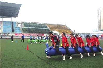 穿上白衣是天使,脱下白衣是健将。此次趣味运动会以团队竞赛为主,分为集体8字跳绳、疯狂转盘、毛毛虫、8×50米迎面接力四个竞赛项目进行,集运动性、竞技性、趣味性、娱乐性于一体。既是力量的角逐,又是智慧的较量;既是个人体育竞技水平的展示,又是对团队协作能力的检验。比赛中,队员们挥洒汗水,你追我赶,裁判员认真负责,公平公正。比赛高潮迭起,呐喊声、欢呼声不绝于耳,欢声笑语洒满湖北科技学院中心校区西区田径场。比赛间隙各方队争相拍照留念,成为本次趣味运动会又一大亮点。