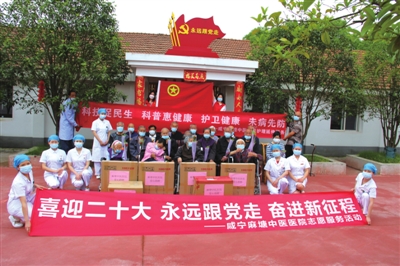 5月8日,咸宁麻塘中医医院在护士节来临之际,母亲节当天,由护理部联合团委组成的志愿服务队,携带爱心礼品走进咸宁双溪毛祠养老中心,开展“喜迎二十大、永远跟党走、奋进新征程之纪念5.12国际护士节科普活动周——科普惠健康 护卫健康 未病先防”主题系列活动,为老年人们进行相关医学知识的讲授和义诊,获得了良好的社会效益。